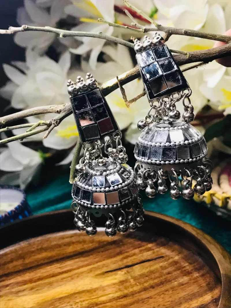 The base of each earring is richly adorned with numerous small silver balls that dangle freely beneath the main structure. These delicate elements add movement, catching light from different angles and creating a subtle shimmer. Beyond aesthetics, the dangling ornaments introduce a tactile richness that elevates the earrings from simple accessories to statement pieces. This layered craftsmanship reflects how an Artificial Jewellery Brand in Pakistan often merges traditional jewelry silhouettes with contemporary styling to appeal to diverse audiences.